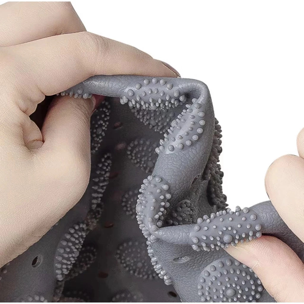 Com superfície antiderrapante e ventosas firmes na base, o Tapete Antiderrapante de Box com Massagador de Pés adere perfeitamente ao box.